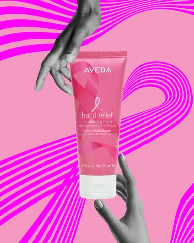 今年、アヴェダは甘いチェリーアーモンドの香りが特徴の限定ハンドリリーフ「ピンクリボン CA ハンドクリーム」で、活動を支援をします。